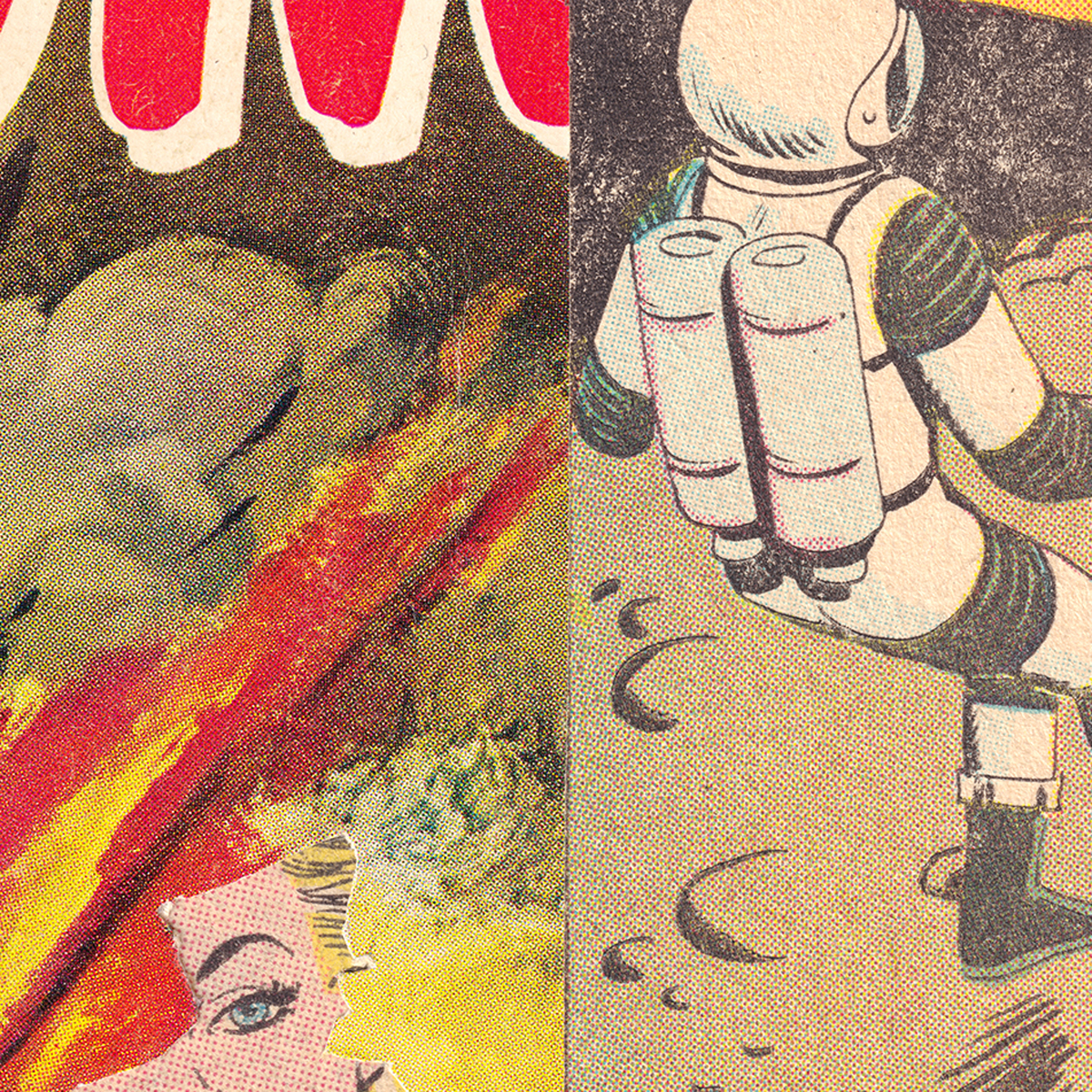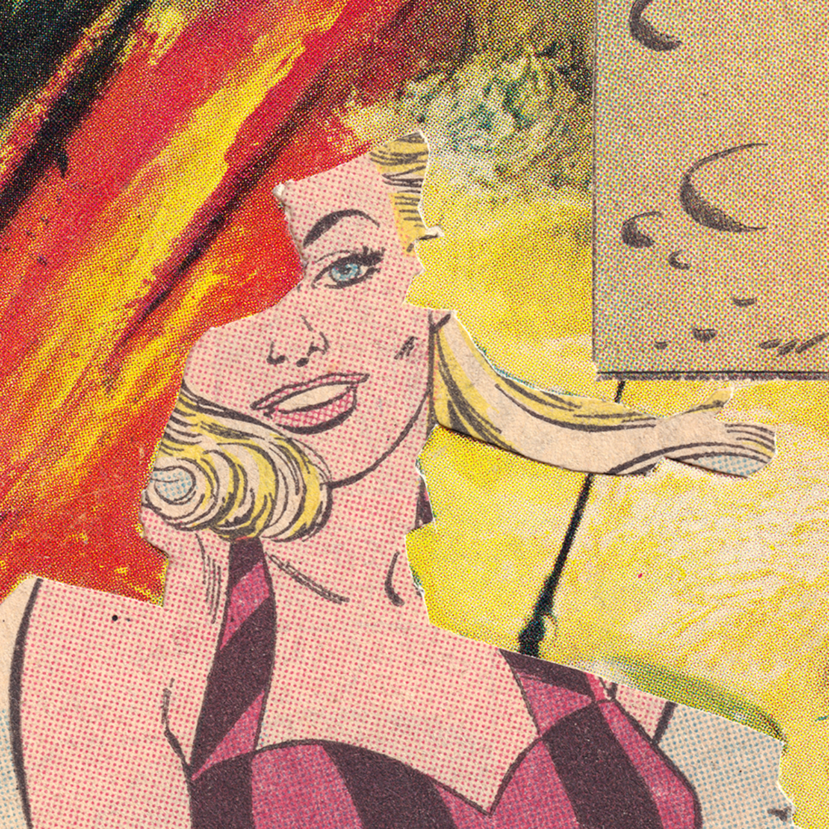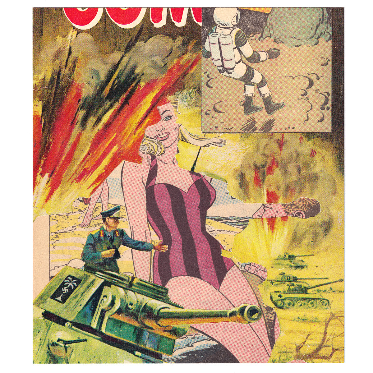 Collage of vintage comic book pages. This is an original analog collage and is one of a kind!